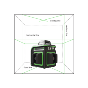 • Projection laser 360° : 1 ligne horizontale et 2 lignes verticales pour une couverture complète des murs et du sol.