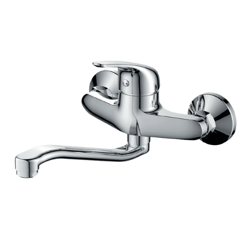 • Mitigeur évier mural SLR : Modèle Rostom (réf. RO-80054), conçu pour un réglage précis de la température et du débit d’eau.
